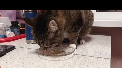 Пьяница кот - горе в семье! Пьёт с батей кедровку