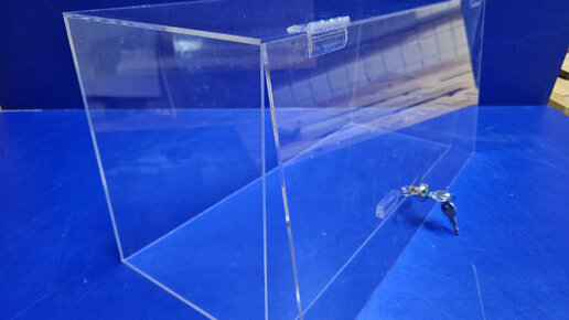 Витрина из прозрачного оргстекла с замком на дверце.