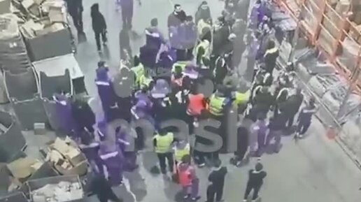 Массовая драка мигрантов работающих в Wildberries с антимиграционной службой