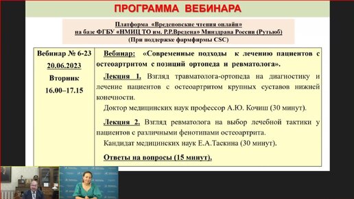 Современные подходы к лечению пациентов с остеоартритом с позиций ортопеда и ревматолога.