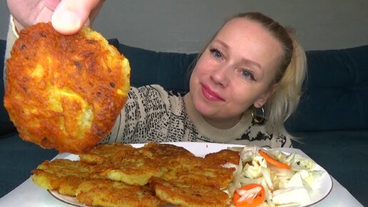 Мукбанг наивкуснейшие Драники с квашеной капустой. Еда.