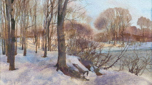 20240322 Парк усадьбы Ясенево. Акварель, этюд.