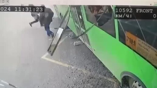 Момент аварии в центре Курска с камеры автобуса на остановке
