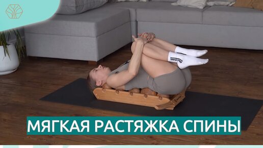 Растягиваем спину на массажере для спины. Мягкое статичное упражнение показывает фитнес-тренер Анастасия Завистовская