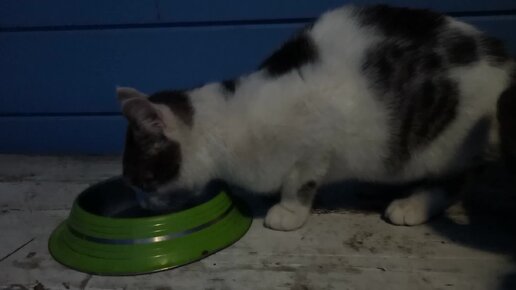 "Уличный" кот пришёл на ужин и устроил 5-ти минутный сеанс "кошачьих нежностей".
