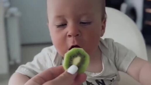 Реакция малыша на киви😂Кисло, но все равно буду есть)