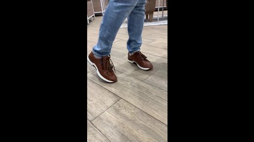 Примерка стильных кроссовок из натуральной кожи