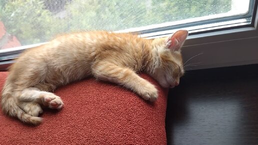 Котенок спит. У Персика сопли пузырями. Лечим рыжего. 😼🍑💞