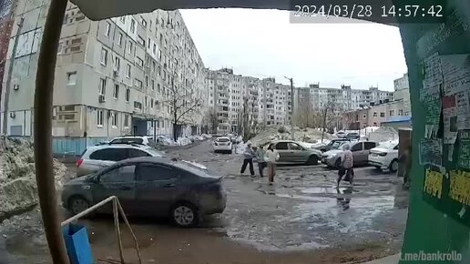 В Уфе курьер прислонил коробку к бетонной стене у подъезда, и стена рухнула
