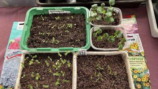 Обзор всходов цветов от посева 18-го марта.