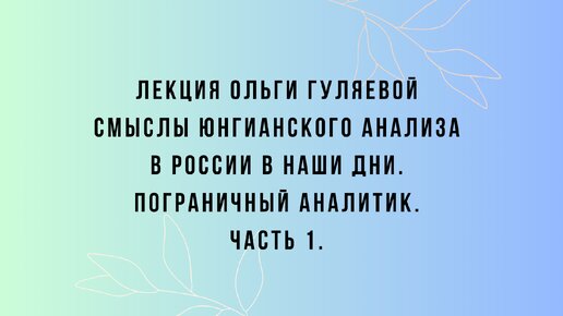 Лекция Ольги Гуляевой Смыслы юнгианского анализа в России в наши дни. Пограничный аналитик. Часть 1.