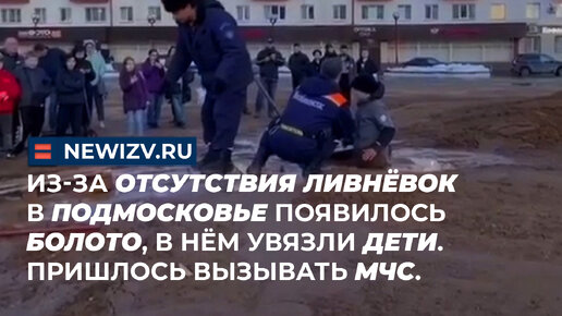 Из-за отсутствия ливнёвок в Подмосковье появилось болото, в нём увязли дети. Пришлось вызывать МЧС.