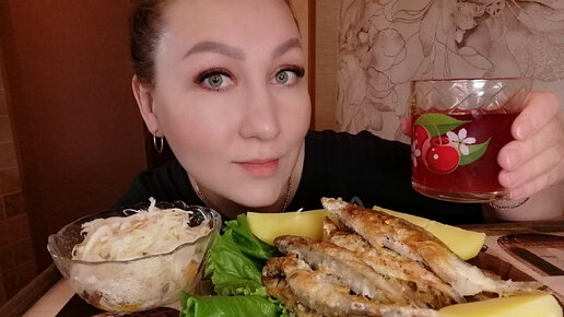МУКБАНГ/ЖАРЕННАЯ МОЙВА😋КАРТОШЕЧКА, КАПУСТКА 🥬ВОНЮЧИЙ НО ВКУСНЫЙ УЖИН😆