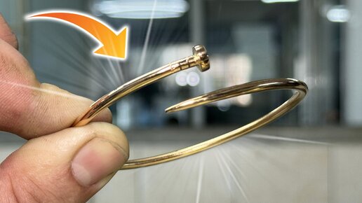 Как делают великолепный золотой браслет для ногтей, похожий на строительный гвоздь?