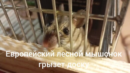 Европейский лесной мышонок с упоением грызёт доску