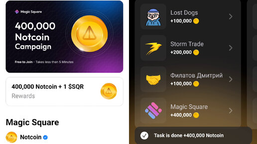 Выполнил задание Magic Square в Notcoin. ПЛЮС 400 000 монет Ноткоин и 1 токен SQR за одно задание