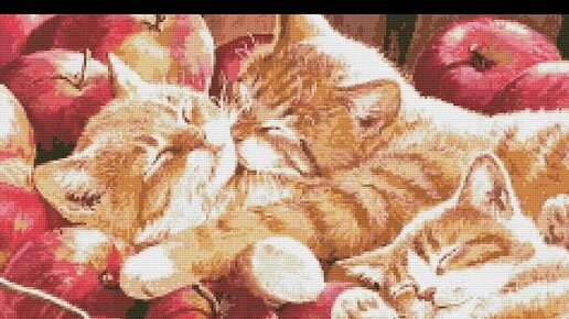 Живой процесс. Рыжие котята в корзине с яблоками.