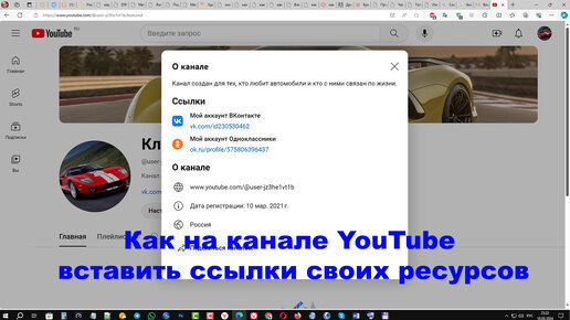 Как на канале YouTube вставить ссылки своих ресурсов
