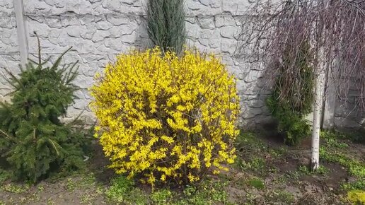 Весенний сад. Форзиция, магнолии и барбарисы.