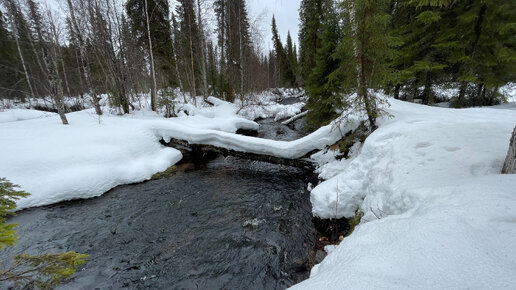 Поиск рыбы в мелких межозёрных протоках. Сломал лыжи. Развеян миф про хариуса. 3 день.