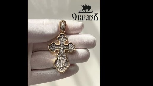 Крест «Распятие. Икона Божией Матери «Нерушимая Стена». Три святых», серебро 925 проба с золочением (арт. 101.833-П)