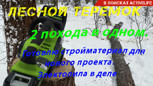 Лесной теремок. 2 похода в одном. Готовлю стройматериалы для нового проекта. Электропила в деле