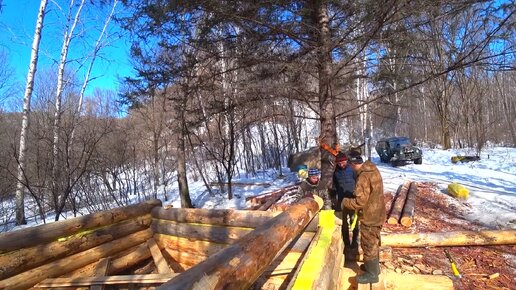 НИ СНЕГ НИ ЛЕД НЕ МОГУТ ПОМЕШАТЬ СТРОИТЕЛЬСТВУ ИЗБЫ В ТАЙГЕ