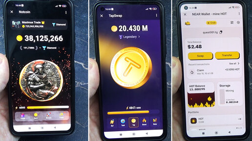 ТОП 3 Бота в Телеграме для Заработка - NotCoin, TapSwap, Hot Mine - Майниг на Смартфоне