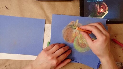 Как рисовать просто? Рисуем тыкву сухой пастелью
