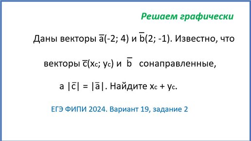 Даны векторы а и b и известно, что векторы с и b сонаправленные, требуется найти координаты вектора с