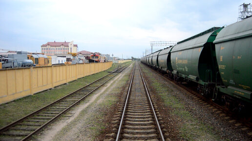 Вид из последнего вагона поезда 688 Гродно - Минск на станцию Лида