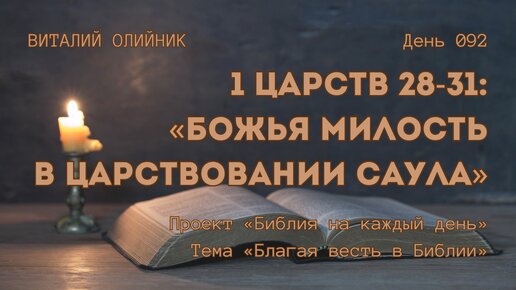 День 092. 1 Царств 28-31: Божья милость в царствовании Саула | Библия на каждый день | Благая весть в Библии | Виталий Олийник