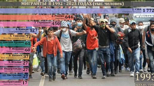 Крупнейшие страны мира по притоку мигрантов с 1992 года по 2023 включительно