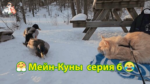 Мейн-куны (серия 6) 😻Кот в парке знакомится с дикими Утками 🦆🦆🦆