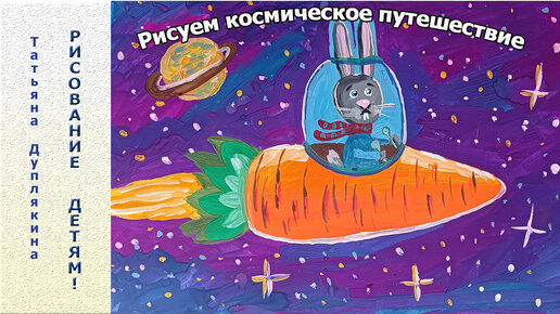 В преддверии дня космонавтики рисуем гуашью шуточную картину "Космическое путешествие зайчика"