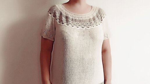 Далее: Туника с круглой кокеткой спицами "Павлинье перо", обзор готового изделия