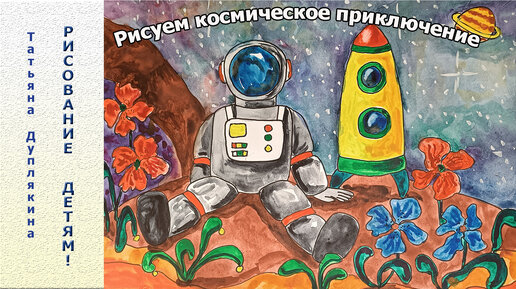 В преддверии дня космонавтики рисуем акварелью картину "Космическое путешествие на планету цветов"