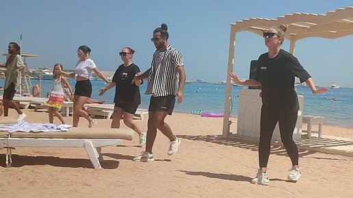 Зарядка в стиле Зумба на пляже.
