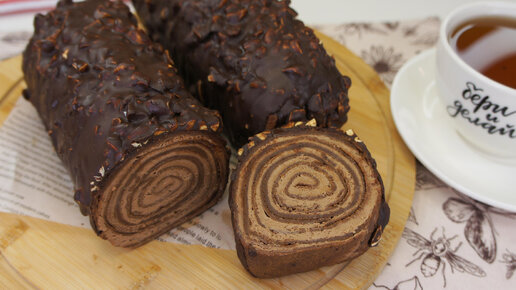 ОРИГИНАЛЬНЫЙ ШОКОЛАДНЫЙ БЛИННЫЙ РУЛЕТ рецепт | БЫСТРЫЙ РУЛЕТ С ШОКОЛАДНЫМ КРЕМОМ И ОРЕШКАМИ