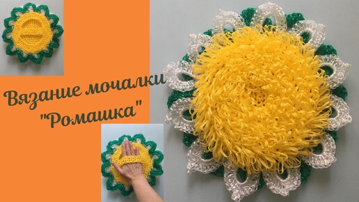 Вязание крючком мочалки "Ромашка". Вывязываем белые лепестки.