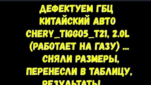 Дефектовка ГБЦ Китайский авто ... Чери Тиго - CHERY_Tiggo5 T21, 2.0L (работает на газу) ...