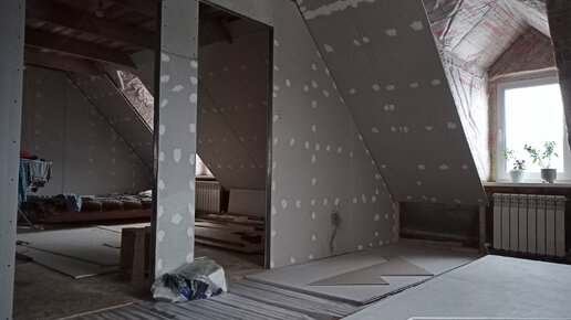 Мансардный этаж. Монтаж ГКЛ, перегородок.