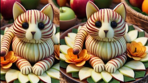 Красивая нарезка фруктов яблоко арбуз клубники мандарины Апилсин