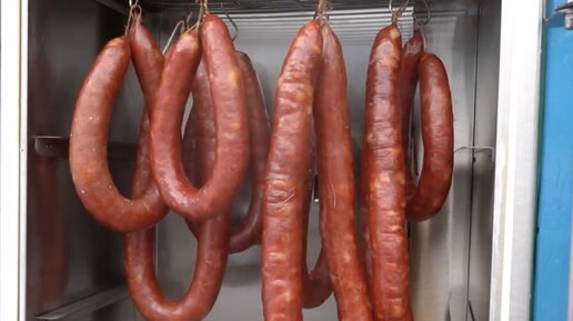Классическая краковская колбаса с дымком. Готовлю ее сам и в 3 раза дешевле, чем в магазине. Идеальное соотношение мяса и жирка!