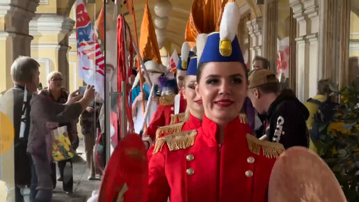 Клоуны, мимы, музыканты и зрители прошлись по галереям Гостиного двора