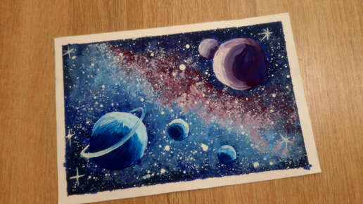 Как очень просто нарисовать космос и планеты гуашью