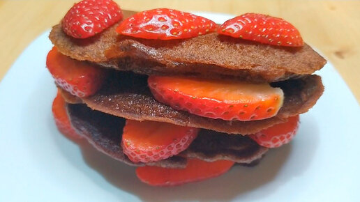 Шоколадные мини блинчики с клубникой. Вкуснейшие блинчики с какао на завтрак