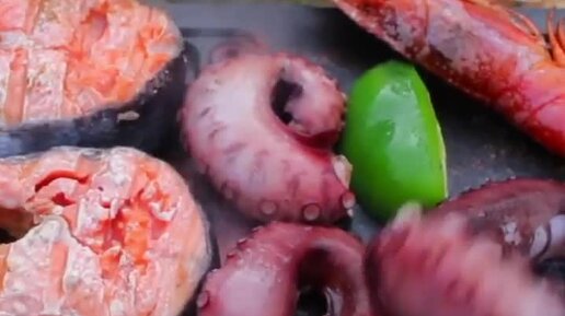 КРАСНАЯ РЫБА и МОРЕПРОДУКТЫ. ЖАРИМ на ВУЛКАНИЧЕСКОМ КАМНЕ