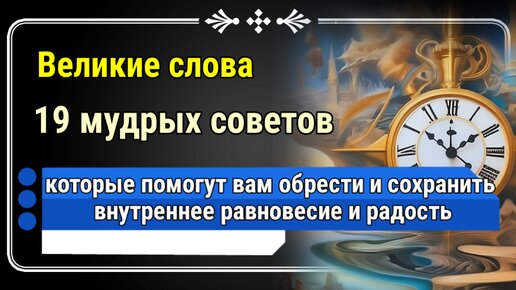19 мудрых советов, которые вам помогут обрести и сохранить внутреннее равновесие и радость.