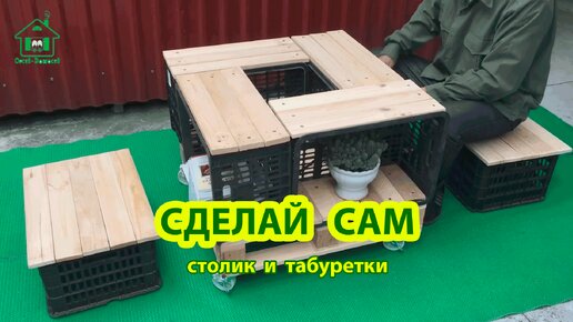 Сделай сам Столик на колесиках и Табуреты из поддонов и овощных корзин 🪚🪛🔨🏡